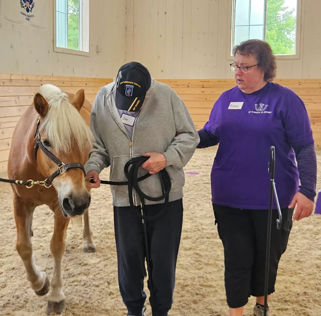 Karen’s trailblazing work is perhaps best known through It Takes a Herd™ (ITAH), a trademarked, dementia-friendly equine-assisted program that blends dementia care expertise, Equine-Assisted Learning (EAL), and a deeply person-centered approach. Through structured, meaningful activities with horses—paired with a robust, research-informed curriculum—Karen intentionally supports both the person living with dementia and the care partner, creating space for connection, confidence, and shared purpose.
