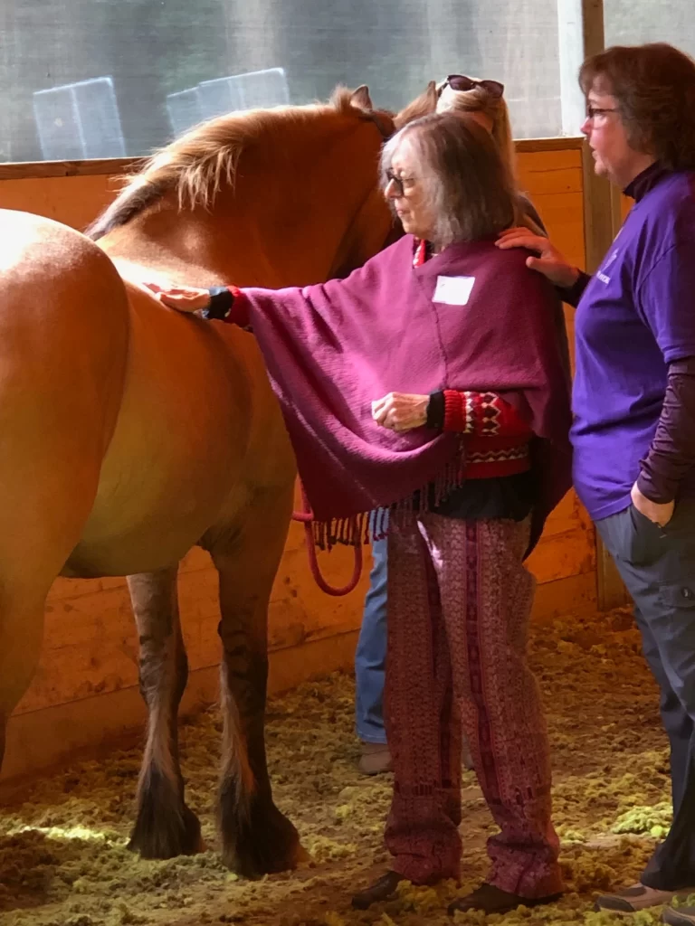 Karen’s contributions extend far beyond equine programming. She holds certification as a Dementia Support Group Facilitator; serves in advisory and speaker roles (including with the VA Medical Center’s Caregiver Support Program and regional Councils on Aging); facilitates equine-assisted Memory Cafes; and is intentional about expanding access for veteran families and others who have historically been underserved. She is also recognized for translating clinical concepts into down-to-earth, actionable strategies that families and community programs can apply immediately.